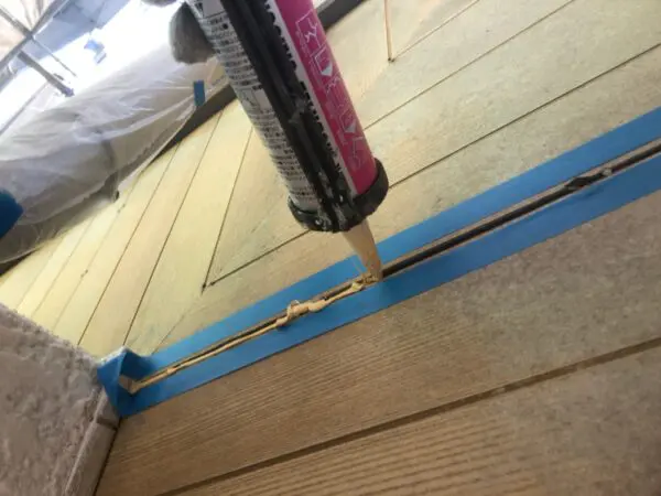 まずは他の箇所にコーキング材が付かないように、マスキングテープで養生をおこないます。