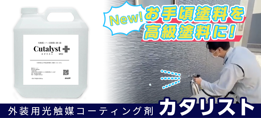 外装用カタリストは、ナフィオン(フッ素樹脂)が含まれているから、メインの塗料にシリコン系を選んだとしても、フッ素の高耐久が後付けできるのです。